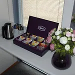 The rooms have a dining area, along with facilities for making tea for your convenience. There is also an electric kettle and a fridge.